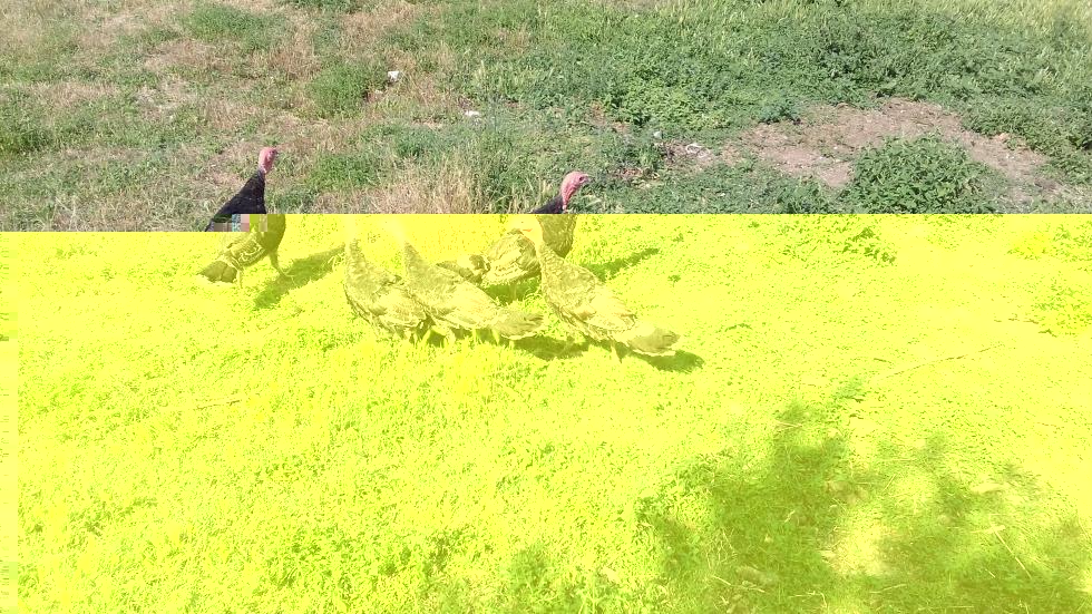 Eccoli, oggi al pascolo con una bella giornata soleggiata a tratti nuvolosa e con temperature abbastanza alte! Comunque alle oche e anatre (con cui condividono il pascolo) non possono proprio vederle!!! Le oche che sono il doppio hanno paura!!! Adesso passiamo alle domande: 1-(domanda stupida!) Da cosa è dato il rosso più o meno intenso nella testa dei maschi e quasi assente nelle femmine? 2-per quanto riguarda l'alimentazione, il mio amico del consorzio mi ha detto di dare 1^ periodo tacchini (con coccidiostatico e 27% di proteina) che mi è durato 15 giorni, poi 1^ periodo selvaggina (senza coccidiostatico e 26% di proteina) misto a granaglie miste che ho quasi finito. Domani vado al consorzio, voi cosa mi consigliate di prendere visto che ormai dovrebbero avere circa 70/75 giorni? 3-mi confermate che sono dei bronzato comuni?