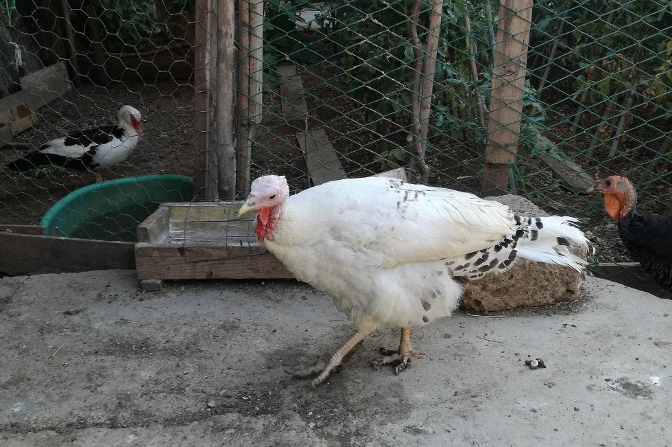 In effetti, è un po' strano che la tacchina più adulta non si difenda; di solito è gerarchicamente superiore. Speriamo che non abbia nulla, anche perché è molto bella. Come ti dicevo, forse dipende dalla muta e dalla lunga cova e accudimento anatroccoli. Sì, il tacchino dovrebbe essere già fertile a quell'età.