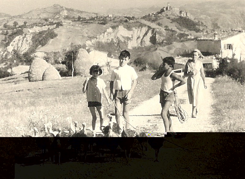 non è un filamto ma solo una foto del padre di un amico, che nel 1954 portava i tacchini a "pasturare" per la campagna, come tanti altri suoi coetanei.