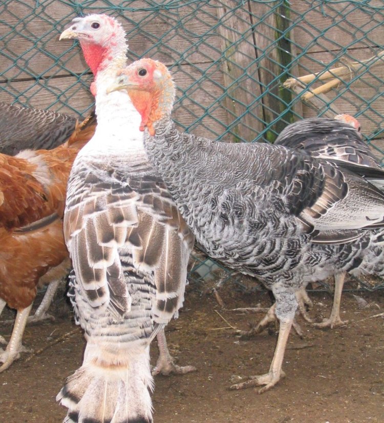 allora..a prescindere dal fatto che i miei tacchini sono uguali a quelli in foto e il proprietario alleva solo razze autoctone romagnole i tacchini hanno pelle gialla e piumaggio senza ali barrate cmq a breve posterò altre foto più chiare e ravvicinate.