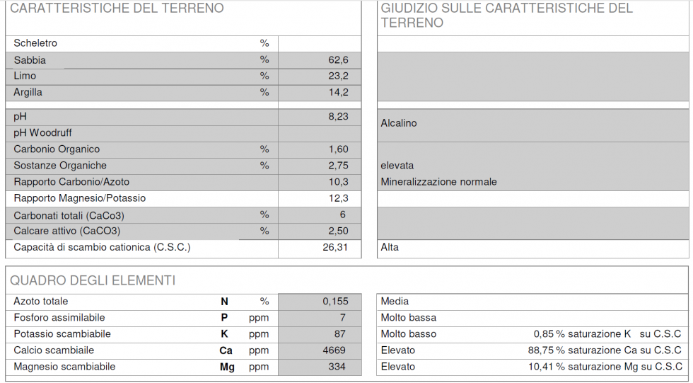 Il carbonati sono bassi ma accettabili, sembra molto sabbioso e questo può crearti molti problemi idrici . Piovosità media annua ?