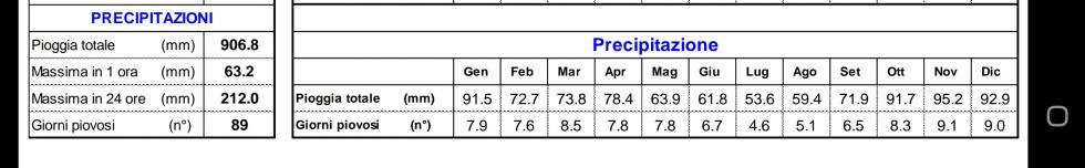 Non ci sono rocce però il terreno contiene molto "pietrisco" o comunque pietre di dimensioni pou o meno grandi. In merito alla piovosità allego tabella.