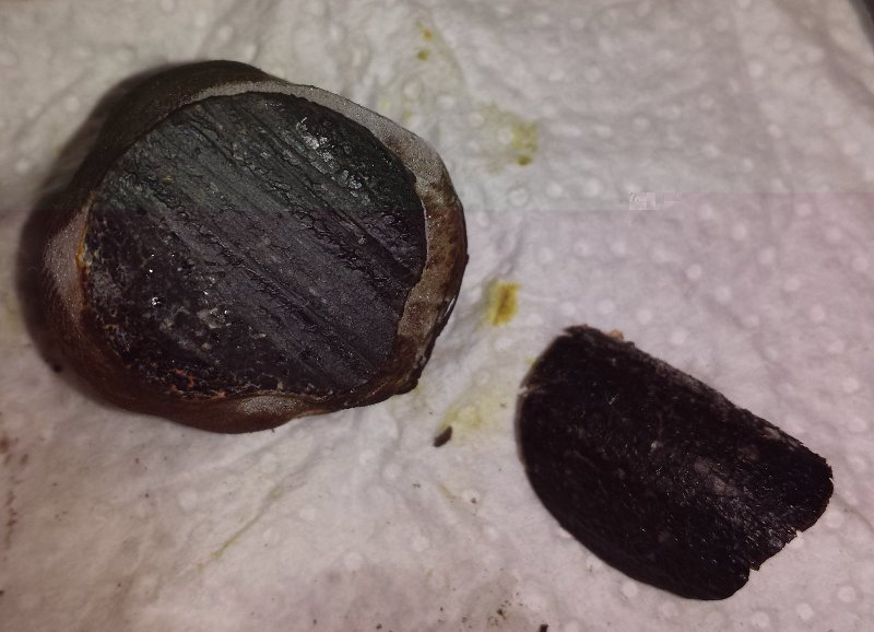 Buongiorno Flavio e buongiorno chri83. Rispondo prima a Chri. Si, l'odore effettivamente ricorda quello delle mele cotte e la gleba sembra sempre umida, non è secca come i più comuni tartufi sebbene sia compatta come gli altri. Flavio, posto queste altre due foto, gleba e peridio. Considera che ho tenuto il tartufo in congelatore. Potrai notare infatti i piccoli cristalli di acqua depositati sul peridio appunto. Spero comunque si capisca meglio. La gleba sembra più compatta e più asciutta ma l'effetto è dovuto al gelo che l'ha come dire "ricompattata". In realtà quando lo tagli da fresco sembra bagnato all'interno. L'altitudine. Dovremmo essere attorno ai 250-300 mt. Il terreno. Compatto, sabbioso-calcareo, chiaro, per quello che ne capisco di terreni. Abito nell'entroterra marchigiano ma i terreni anche solo a distanza di qualche km cambiano molto per colore e compattezza. Grazie