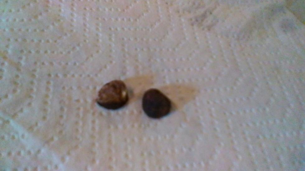 Ciao a tutti, vi disturbo per un consulto, sto addestrando il cane con olio al tartufo bianco, mentre fino a settembre ho usato lo scorzone, oggi tra un sotterramento e l'altro dell'ovetto, ho raggiunto per curiosità un tiglio nella mia proprietà. Sotto di esso la cagnolina ha trovato senza scavare, appena sotto lo strato di foglie, questa pallina (dimensione di un pisello) che profuma appunto di bianco. Il peridio è un pochino coriaceo ed il tuber è troppo piccolo per valutare le venature della gleba. Il peridio ha un colore marrone molto scuro liscio come una nocciola sgusciata, mentre la gleba è color nocciola. Io credo che sia macrosporum, ma il fatto che fosse appena sotto le foglie e la difficoltà di osservare la gleba mi lasciano dei dubbi. Potrebbe essere un fungo epigeo dall'aroma agliaceo? (Ne esistono?) Grazie dell'attenzione!