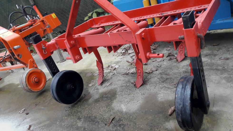 Il mio è più piccolo, fatto per un motocoltivatore ma è simile. L' unica cosa che non vedo l'asta o una ruota per regolare la profondità. Devi lavorare sempre alla stessa profondità nei Pianelli io non vado oltre i 15 cm.