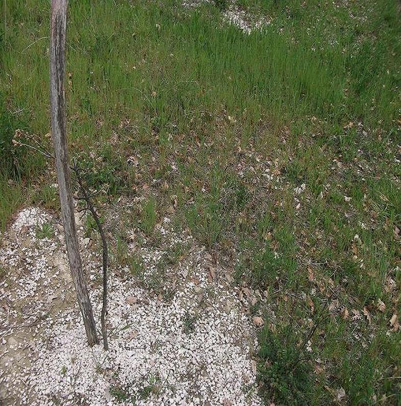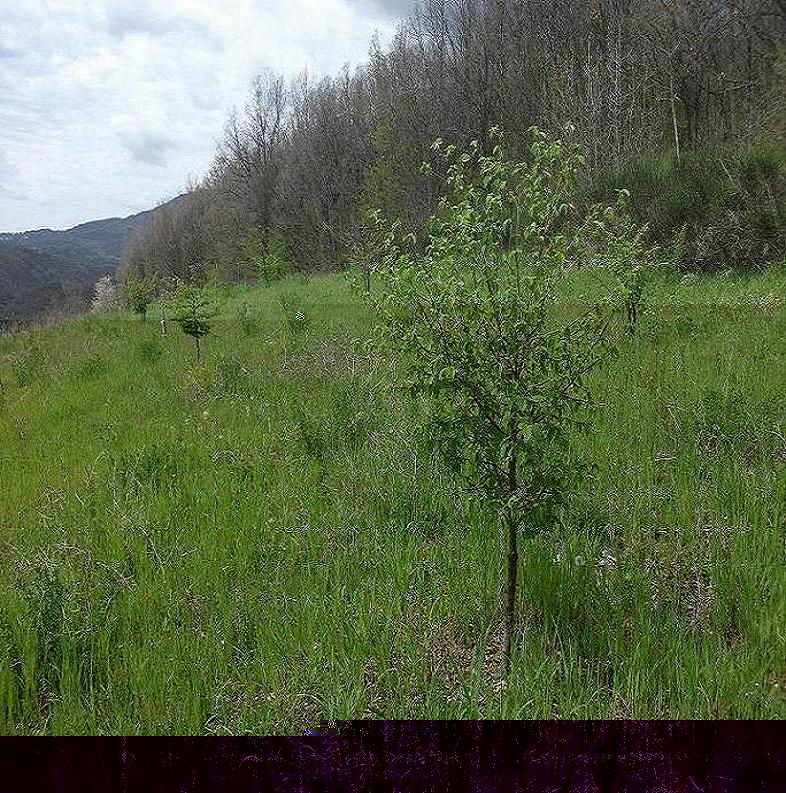 Altre 2 foto,in una ce' un carpino ben sviluppato forse la foto nn rende bene ma ha un bel fusto e una bella chioma ma nn ha dato ancora segni di pianello mentre il cerro meno sviluppato per avere 7 anni inizia a diradare l'erba circostante...nn sono certo che si tratti di pianelli me se fosse cosi' preferirei avere tutte le piante con sviluppo lento,voi no?