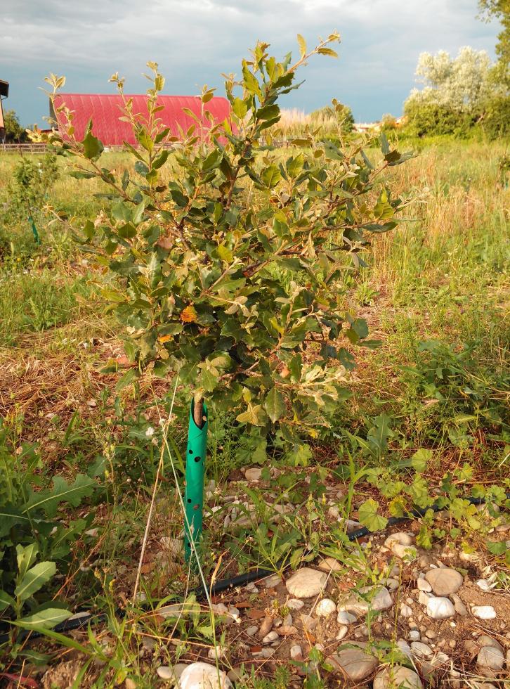 ecco le piante di melano di 3 anni , i carpini sono alti 1,5 mt i lecci sono appena piu' bassi ( appena sopra il metro ) mentre le roverelle sono sui 80 / 90 cm . anche io ho lavorato il terreno in aprile , e sono gia' al terzo sfalcio d'erba ( ma non attorno alla pianta ).