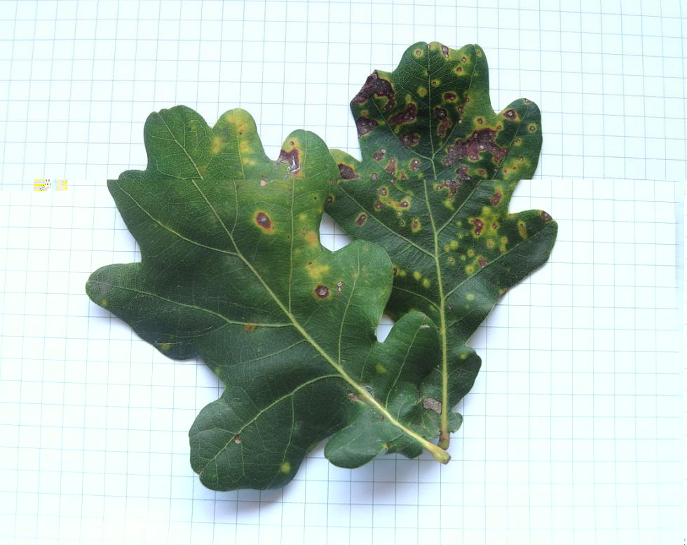 Phyllosticta maculiformis nella forma asessuata), molto meglio conosciuta su castagno col nome di fersa o nebbia dove può realmente causare danni (su quercia è occasionale e trascurabile).