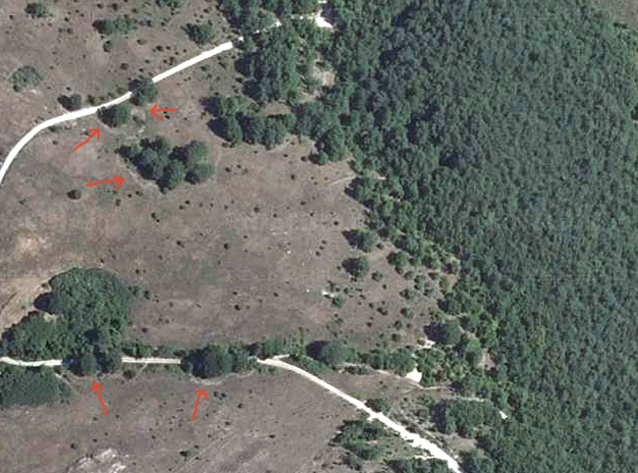 Tipo di vegetazione? Molti posti di estivum li individuo dal satellite, se osservi intorno alle piante si nota un alone chiaro. Ovviamente dipende dal tipo di cartine e luoghi, nel caso della foto allegata si tratta di zone sugli 800 slm.