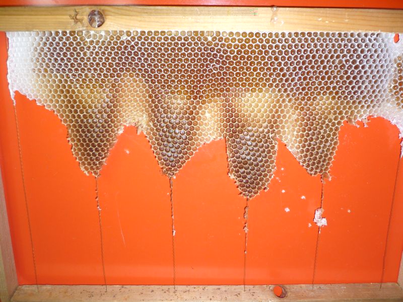 Commento file: Ecco il favo come si presenta costruito dalle api.