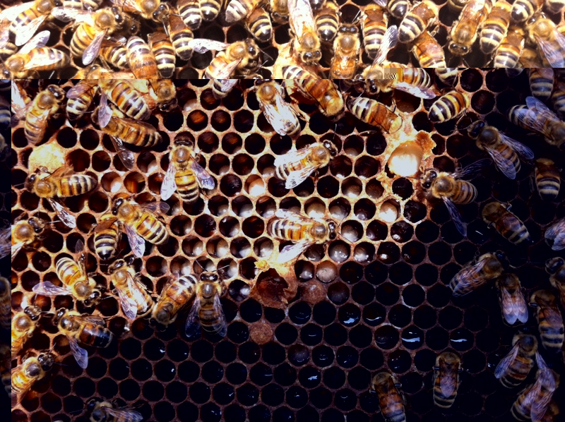 I cupolini in foto sono indubbiamente celle reali e sembrano contenere larve. Controlla bene se ci sono uova appena deposte.