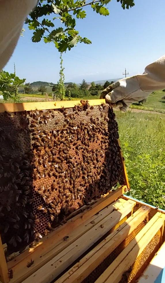 Ciao EmaBee, io non vedo alcuna patina nera sulle scorte ma solo miele opercolato in favi non proprio nuovi. Il problema è che non vedo nemmeno le api e la covata che si vede nelle foto è solo opercolata, poi, magari ci sarà anche covata fresca ma questa solo tu puoi vederla. Considerando la popolazione di api che si vede, ci sono due possibilità: la famiglia è sciamata di recente, forse più volte, caso in cui non troverai covata fresca, oppure è sciamata da più tempo, forse più volte, e quella che si vede è la covata della nuova regina, quindi anche fresca. Per quanto riguarda l'altra famiglia, discorso simile: è sciamata ma la nuova regia non ah iniziato ancora la deposizione, sempre che sia tornata sana e salva dal volo di fecondazione. Sono tutte cose che dovresti capire visitando le famiglie. Le regine erano marcate o no? Le hai viste? Hai visto larve piccole e uova? Hai visto celle reali?