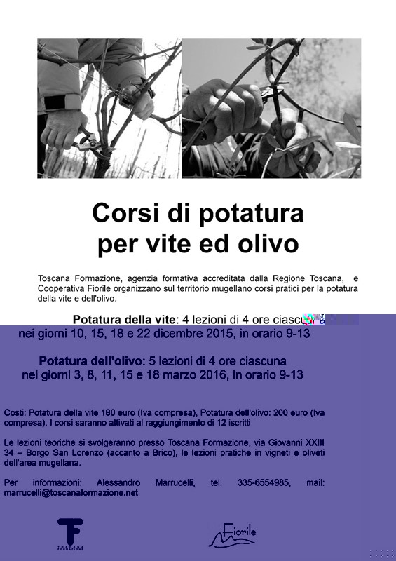 Toscana Formazione, agenzia formativa accreditata dalla Regione Toscana e cooperativa Fiorile organizzano sul territorio mugellano corsi pratici per la potatura di vite e olivo.