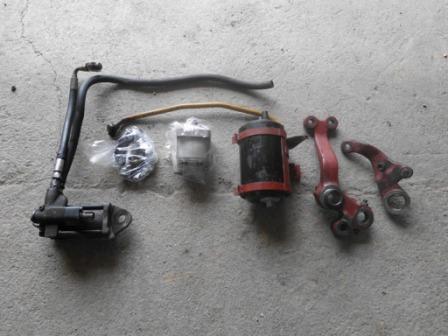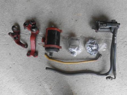questo e' il kit che si monta nel vano sotto la batteria , con la vasca di recupero che si staffa sulla di fianco alla pompa dell'acqua appena dietro la ventola e ce anche la pompa a ingranaggi che si monta davanti dove ce la finestra