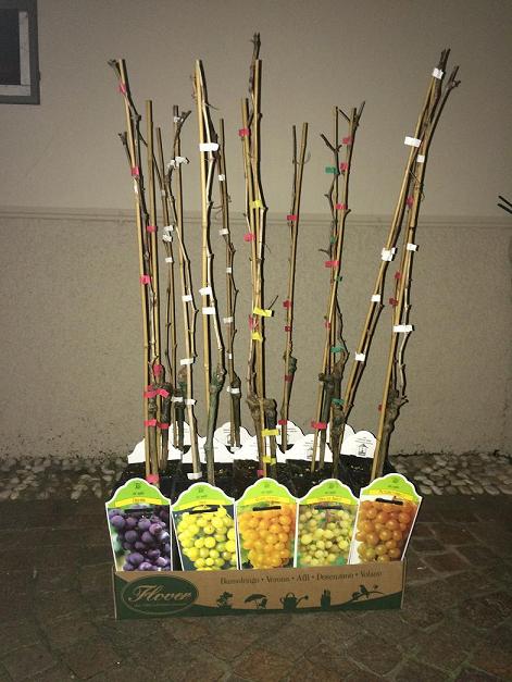 Oggi ho acquistato 14 piantine di un anno di uva da tavola (7 bianche e 7 nere) delle seguenti varietà: