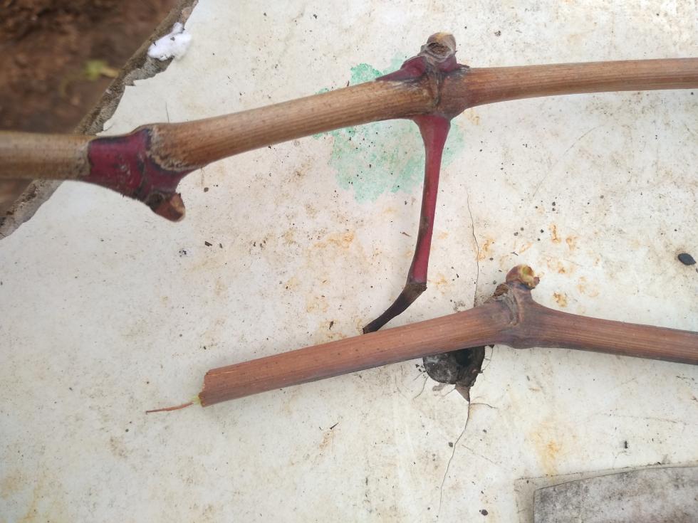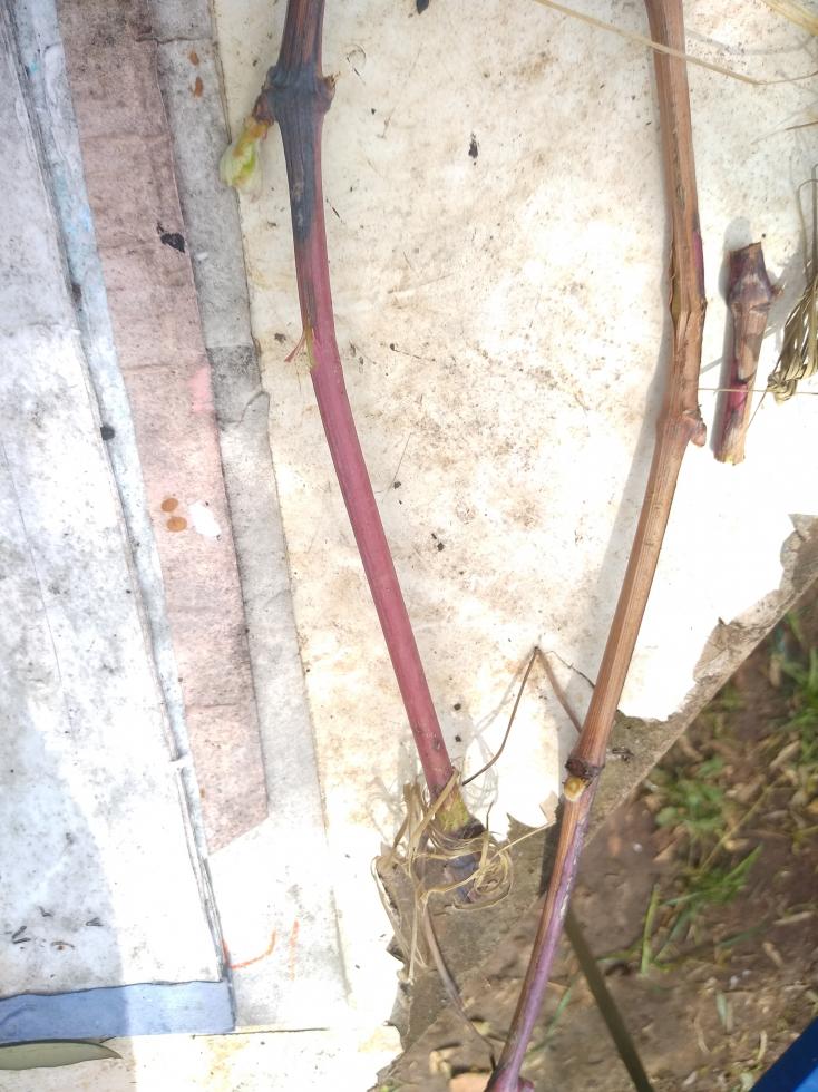 Un saluto agli amici viticoltori; chiedo, sempre da hobbista, un riconoscimento è un consiglio per questa vite di nero d’avola che dopo aver colorato il vigneto di rosso vivo in autunno, ora presenta questi rami Rossi che sembrano seccare in punta oltre a presentarsi come cotti, con gemme in difficoltà. E’ un periodo di innesti ancora per pochi giorni, magari se la malattia é grave questa sola vite ammalata la taglio in basso e la reinnesto con varietà meno soggetta.