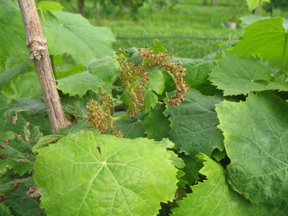 Per cambiare principio attivo ho in casa un prodotto a base di fosetil alluminio gr 20+ rame gr 15 (sistemico) e rame 30, altrimenti ditemi qualche altro tipo e vedrò di procurarmeli. Allego foto dell'unica vite (almeno per il momento spero) con grappoli che si seccano. Saluti