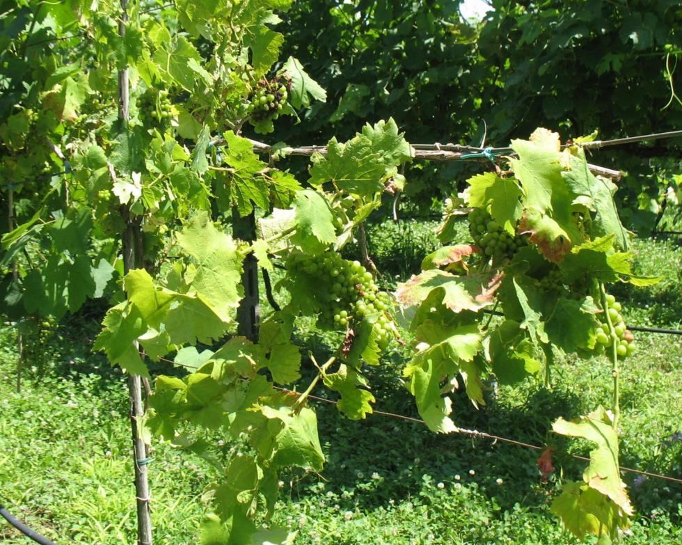 Buongiorno allego delle foto di una vigna di Lambrusco di 11 anni, cosa posso fare per salvarla, stasera posso dare del chelato di ferro e togliere i grappoli in modo che si salvi la pianta, consigli sono molto bene accetti, saluti N.B. la stessa è vicina a un fico che è a nord-ovest quindi non fa ombra, però le due o tre vigne vicine son tutte striminzite.