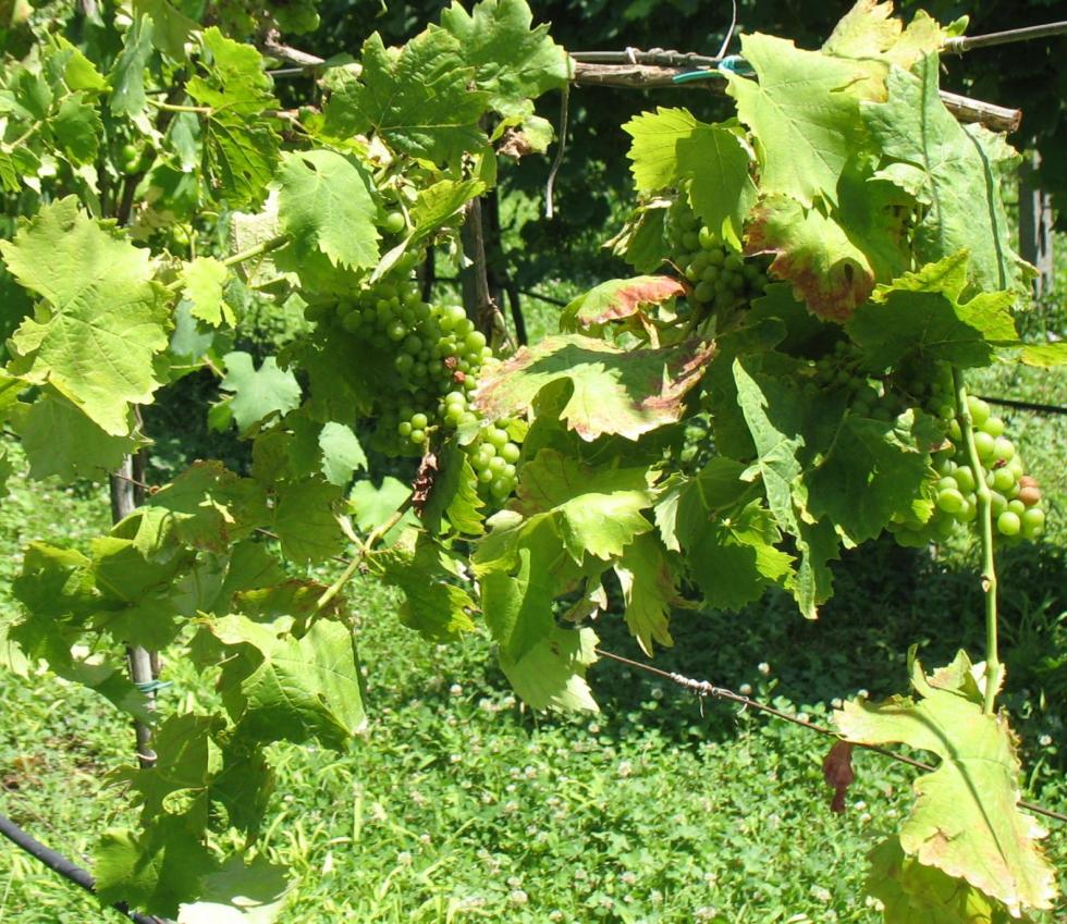 Vedo però dei grappoli marcescenti. Se riesci ad eliminare la parte marcia sdenza lesionare i chicchi vicini sarebbe bello. La colorazione del bordo fogliare può dipendere da molte cose (anche punture di cicalina) ma dalla foto si fa fatica a dare una diagnosi. Diciamo che punterei su una carenza.