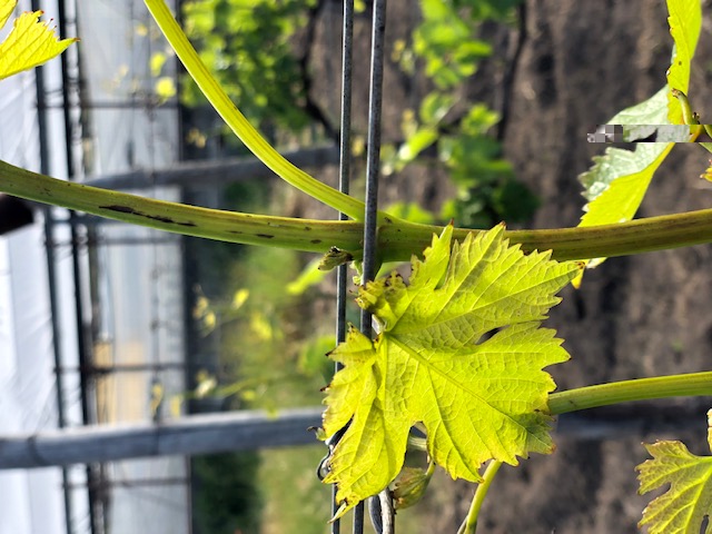 In realtà ho commesso io un errore: ho miscelato il concime di boro con il rame. Era la prima volta che usavo il boro (perché l'anno scorso ho avuto delle cascole) ed ho commesso quest'errore di inesperienza per ben due volte. Alcune foglie hanno subito danni: bordi anneriti o ingialliti, ispessimento. Spero non ne abbiano risentito anche i grappoli, ma lo scoprirò dopo la fioritura.