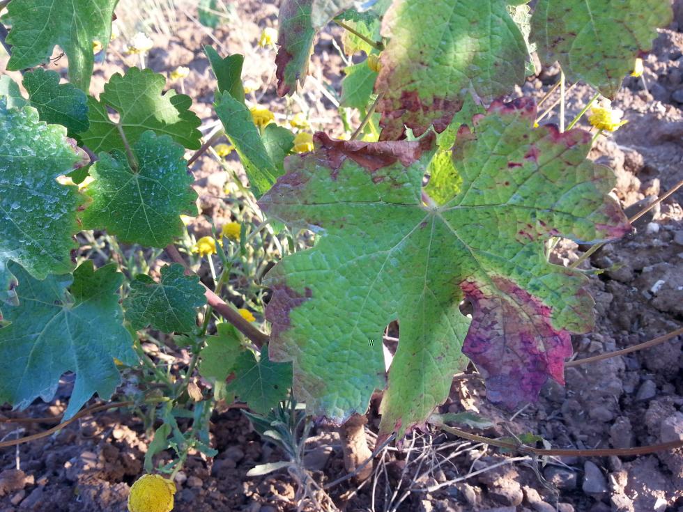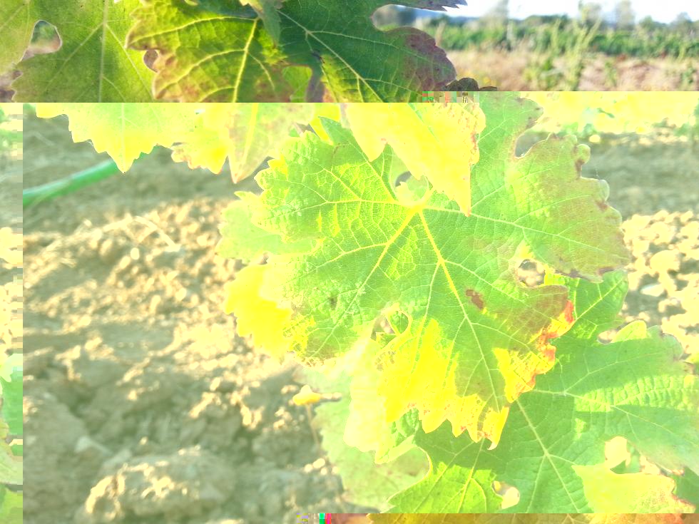 a me sembra carenza di potassio. varietà (uva rossa certo) e portainnesto se possibile