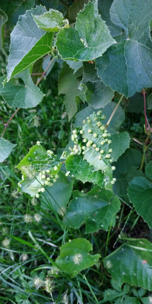 Ho trovato foglie infestate sia in viti giovani di Clinton che altre di cabernet (penso, comunque sicuramente una vite europea), essendo queste coltivate a parecchi km di distanza.