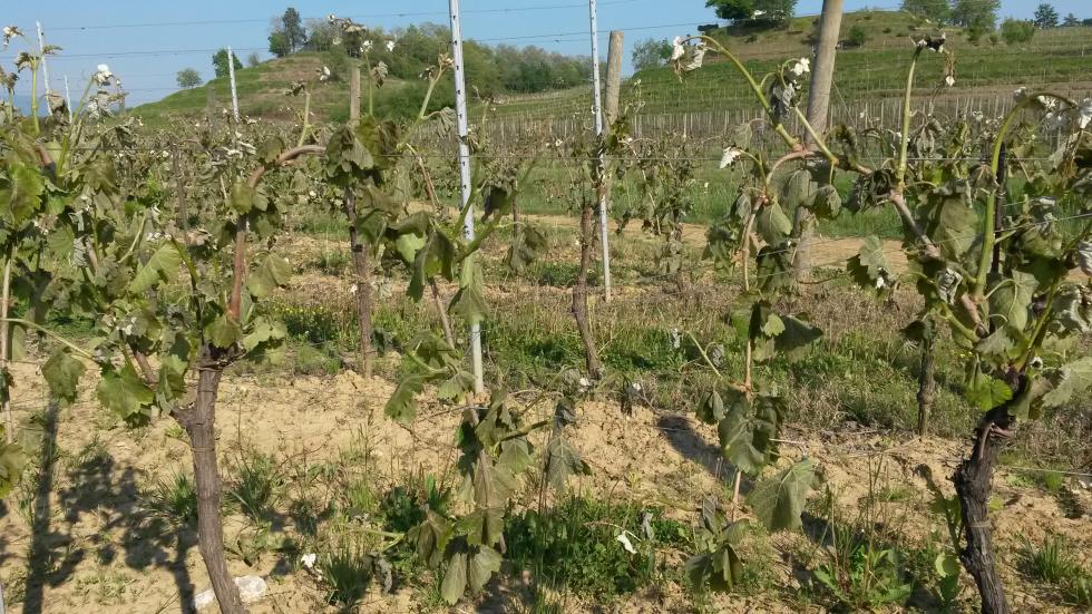 x Mortotoccaci, erano barbatelle messe a dimora a dicembre 2016, ricoperte con la terra fino alla metà di Marzo. Dai dati che ho io ho 9mm di pioggia il 15 Aprile, 1,5mm il 16 Aprile, e 6mm il 18 Aprile. Per le temperature ho 0,1 C° di minima il 20 aprile, 0,9 C° il 21 aprile, e -0,4 C°il 22 aprile, le massime tutte abbondantemente sopra ai 12 gradi nei 3 giorni. Ma i primi 2 giorni non ho trovato danni, forse qualche germoglio sofferente ma niente di che, il 22 ho ritrovato tutto steso a terra.