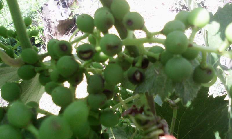 meno male che i grappoli erano protetti dalla vegetazione altrimenti i danni sarebbero stati maggiori... cmq ho compromesso buona parte del raccolto.... anche se non sono ancora a regime perche' anche quest'anno ho impiantato altre barbaelle...mentre stanno crescendo quelle dello scorso anno e precedenti...che pero' ancora non producono... e' un peccato ma la grandine e' una cosa naturale il problema sono questi cambi improvvisi del clima per cui si ha siccita' o piogge eccessive o peggio ancora.... idem per le malattie fungine e per gli insetti nocivi....da me ho parecchie foglie mangiate... ma non voglio trattare pure con insetticida....