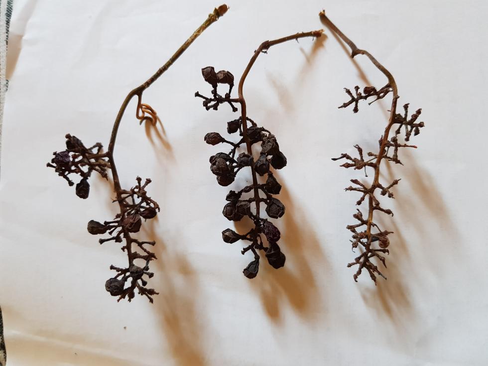 Ho un filare di viti che dovrebbero essere resistenti alle malattie, in provincia di Varese, sono cabernet Prior, cabernet Cortis e gold Muscat, è il secondo anno di impianto da barbatelle a radice nuda, quest'anno hanno iniziato a formarsi pochi grappoli, ma il prior presenta questa situazione dei grappoli, nella foto allegata, le foglie non sono apparentemente colpite da fitopatologia, a parte un moderato attacco da parte della poppilia, le altre varietà non sembrano colpite fin'ora, cosa potrebbe essere e cosa dovrei fare, ovviamente per il prossimo anno? Anche se sono varietà resistenti sarebbe utile comunque trattare con rame e zolfo?
