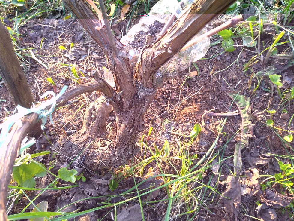And86slatan, io innesto mie viti che hanno da 3 a 10 anni, in questo periodo lo sto rifacendo perchè l’anno scorso la pronospora mi ha distrutto l’uva, quindi cambio la varietá per mettere quelle resistenti alla malattia. Tuttavia un ramo della vecchia varietá lo dovresti lasciare per far sopravvivere il tronco se l’innesto non prende. Il taglio si fa a un ramo della biforcazione lasciando l’altro, o appena sopra il capo da lasciare, se tronco abbastanza grosso ( almeno 2 cm). Tagliare con una sega per ottenere superficie orizzontale il più possibile e spacco verticale. Nello spacco metto anche tre marze se ci vanno, le due laterali a stesso livello di corteccia e aventi sufficiente corteccia, marze preparate con il taglio a cuneo e osservando che dentro sono verdi ( non prendere mai prima o ultima gemma di un ramo conservato) In breve chiudo intorno con nastro isolante, stringo lo spacco con un giro di fil di ferro usando una pinza, e uso sigillante la pece solida a caldo, che solidifica subito e non si lava con la pioggia. La metto,tutto intorno lo spacco e sui tagli sopra la marza, non si deve vedere più legno tagliato. Il prosieguo dipende dal clima: a questo punto ho lavorato tanto da non voler perdere l’innesto. Molte volte é sbocciato e poi seccato per calura improvvisa. Allora ho iniziato a mettere anche della terra intorno l’innesto con mezza bottiglia di plastica rovesciata che , con due tagli lungo il collo , la apri la infili sull’innesto fino Sotto lo spacco e la stringi col fildiferro. Dentro la plastica se rimane qualche buco lo chiudi col cartone bagnato, poi riempi di terra fine , lasci fuori le gemme superiori. Se pende col suo peso devi mettere un sostegno.Quando inizia il caldo innaffi un poco periodicamente. Se l’innesto sbocciato finisce all’ombra del ramo foglioso rimasto sulla pianta sopravvive meglio. Può seccarsi all’improvviso, per il sole forte, o per la peronospora o altre malattie. O rottura per il vento. Va seguito , va anche legato a una canna o bastone perché crescendo si può rompere. A febbraio dell’anno dopo devi smontare l’innesto che ha preso. Se diventato lungo più di 20 cm togli delicatamente tutto l’involucro, fino al filo che stringe lo spacco, con una pinza a punta tagliafili. Conviene lasciare il nastro facendoci un taglio così si allarga con la crescita. Buon lavoro. Allegato: