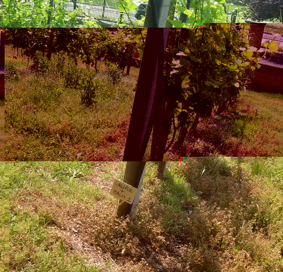 A titolo di curiosità vi mostro cosa si sta facendo come ricerca di strategie alternative di difesa dalle malattie delle piante a basso/nullo impatto ambientale; le foto sono di ieri nel corso di un incontro presso Agrinnova - Università di Torino: qui stanno lavorando su vite in particolare contro peronospora (cercano anche di facilitare l'infezione con irrigazioni sovrachioma) ... però qualche macchia di