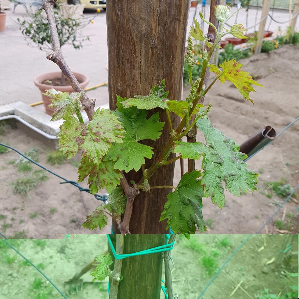 Chiedo un vostro giudizio riguardo ad una vite d’uva bianca da tavola ( nelle foto) comprata l'anno scorso in un garden, al germoglio delle prime foglie noto delle macchie marroni su di esse non so se sono tipiche della pianta o e qualche malattia, mi potreste dare qualche informazione.