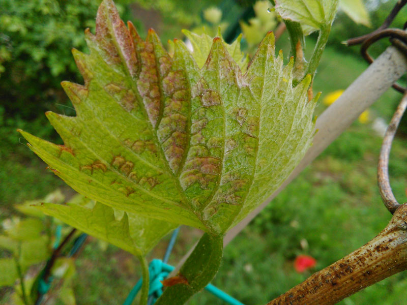 Buon giorno a tutti ho due viti di uva da tavola (avevo già aperto l'anno scorso un post su di loro), che si sta risvegliando in queste settimane. Ma appena spuntate le foglioline, alcune hanno manifestato questa malattia, cos'è? E come posso trattarla? Grazie mille!
