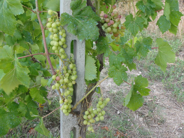 Provo con questa, più "leggera".Nel tralcio a frutto si vedono due grappoli e, dall'altro lato, la foglia. La "femminella" all'ascella della foglia non è ancora cresciuta o è già stata eliminata. Le femminelle che crescono all'ascella delle foglie più in su dei grappoli, vanno rispettate.