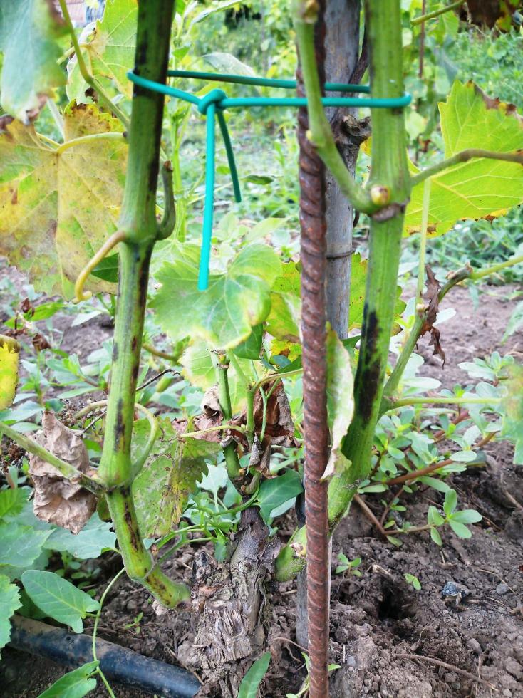 Potresti anche provare a lasciare comunque quei due tralci e allevare un terzo se ti parte (pulendo i piccolini che adesso ci sono). Poi in inverno si valuterà