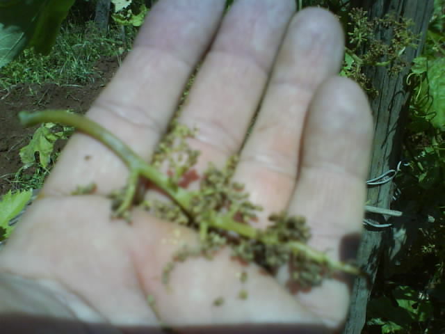Giovedì ho dato per la prima volta un prodotto di cimoxanil con zoxamide, unico che mi hanno dato in consorzio, mentre chiedevo dimetomorf e mancozeb che non danno senza patentino. stamattina passo nei punti critici del vigneto e vedo che i grappoli di montepulciano sono bruciati e si sbriciolano. Chissà cosa rimarrà quest'anno? Allegato: