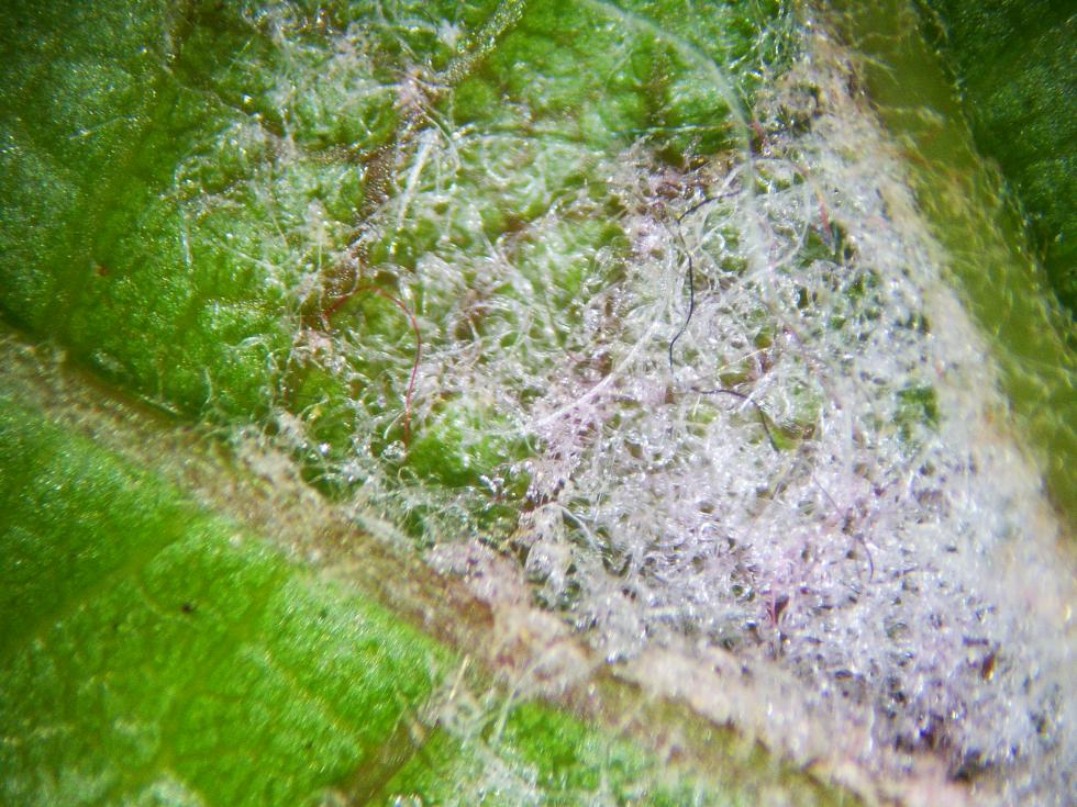 close-up) e insinuato nel tessuto fogliare che punge per procurarsi nutrimento: per reazione la foglia emette peli che formano come un ammasso feltroso da cui il nome dato all'avversità.