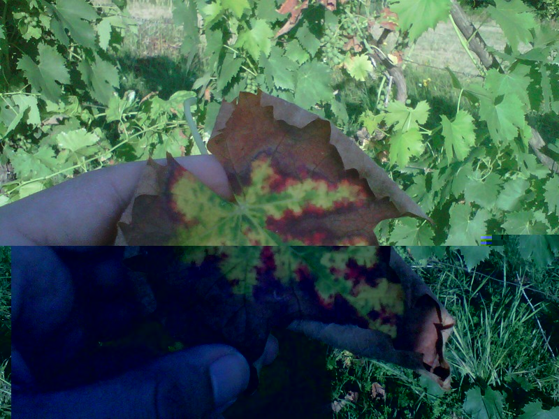 Peròdue dettagli mi hanno preoccupato ulteriormente: vi posto la foto di una foglia e di un tralcio della pianta che era messa un po' peggio che non mi sembrano tipici colori di bruciature da prodotti