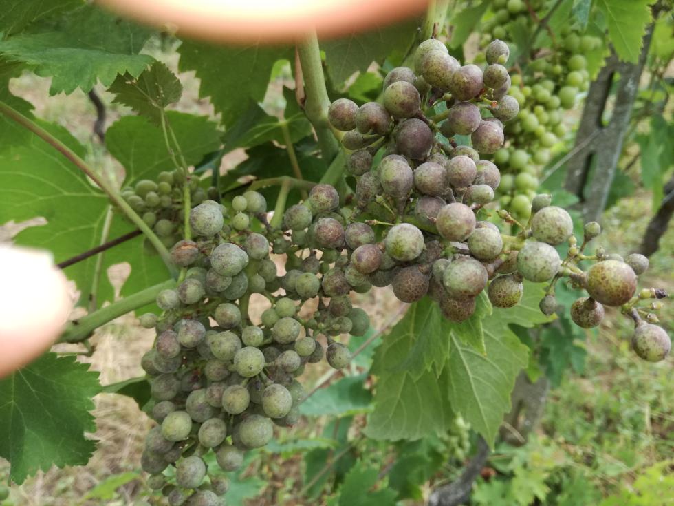 fortunatamente solo quello e le foglie sono sane. Come devo comportarmi ? elimino i due grappoli malati e passo lo zolfo in polvere solo su quella vite, su tutto il filare o su tutto il vigneto ? Grazie