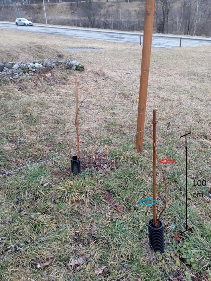 petty8 ha scritto:- Dei due rametti evidenziati non è detto che debba tenere il piu alto. Nel caso specifico mi sembra migliore quello azzurro che è alto circa mezzo metro da terra, mentre quello rosso parte da una diramazione piu laterale dalla base della barbatella