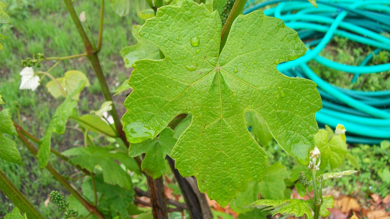 Questa è la foglia di una vite cresciuta da un tralcio messo direttamente a dimora, dovrebbe essere uva fragola