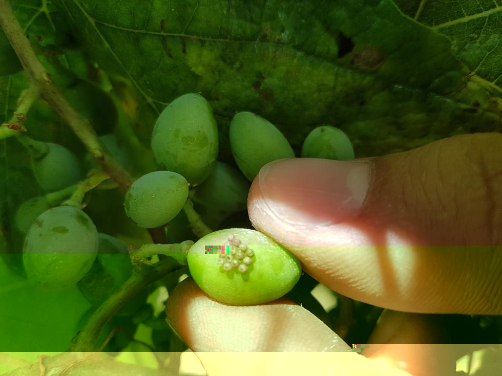 Buona sera a tutti. Mi sono imbattuto in queste strane uova (credo) sugli acini.