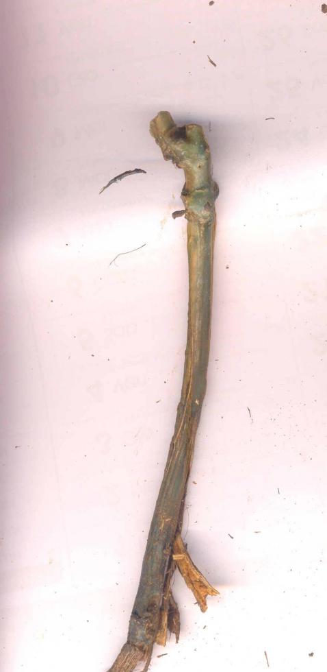 dopo la foto intera l'ho piegata si è rotta perchè legno secco, si vede l'anima marrone scura, chissà di quanto vecchia; radici trovate così, non mi ricordo se erano più folte all'inizio, Allegato: