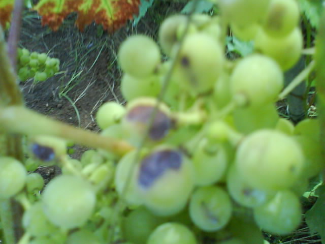 osservandolo più in dettaglio ciascun grappolo della prima pianta (san giuseppe nero) ha qualche acino con con erosioni nere vedi prime due foto (forse troppa acqua o troppa siccità, sperando che non sia peggio); ho poi notato i rossori leggeri sulle foglie delle piante vicine innestate su stesso portinnesto (anche su montepulciano) senza conseguenze per ora su grappoli. Allegato:
