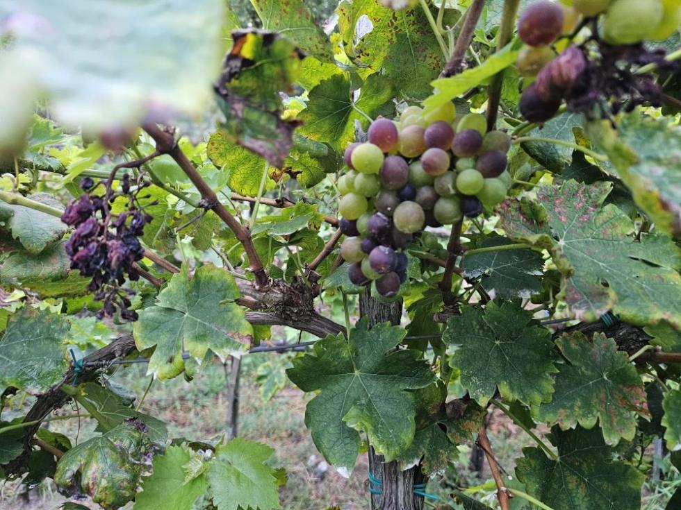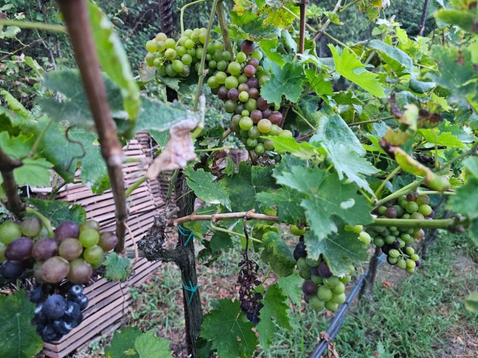 Buongiorno a tutti, come anticipato ho fatto le foto dello stato attuale della maturazione del montepulciano. Chiaramente questo e' un anno particolare con la peronospera ed anche io ho perso almeno un 30% della produzione per cui non fa troppo testo, ed anche quello che e' rimasto non e' che sia in gran forma, pero' condivido delle foto, che vorrete se possibile commentare. Io personalmente rispetto all'anno scorso, considerato che ho utilizzato il potassio in via fogliare dall'allegagione e fino alla fine, noto un leggero miglioramento di uniformità della maturazione. Morto, tu che sei il padre delle mie viti che dici ? devo tenerle o tolgo le speranze e taglio tutto. Onestamente tanti sacrifici, anche se sono 100 piante, per poi non ottenere un buon risultato, mi secca......