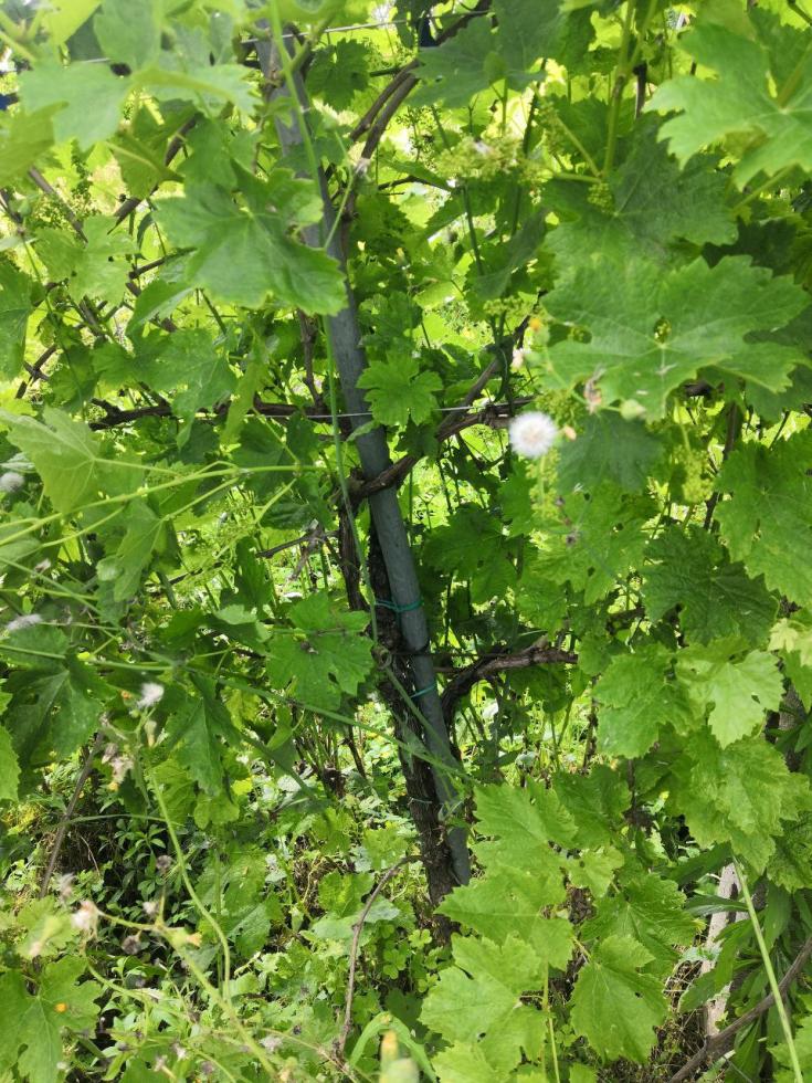 Le viti avevano molti grappoli, ovviamente tutti piccoli e non uniformemente sviluppati. Ho tagliato tutto come se fosse una siepe e si è arieggiato molto. Purtroppo questo tempo non lascia tregua e piove ormai da un mese e mezzo, nonostante i trattamenti con prodotti di copertura e sistemici si sono ammalate tutte di peronospora. Continuerò con i trattamenti e quest'inverno le poterò in maniera corretta.