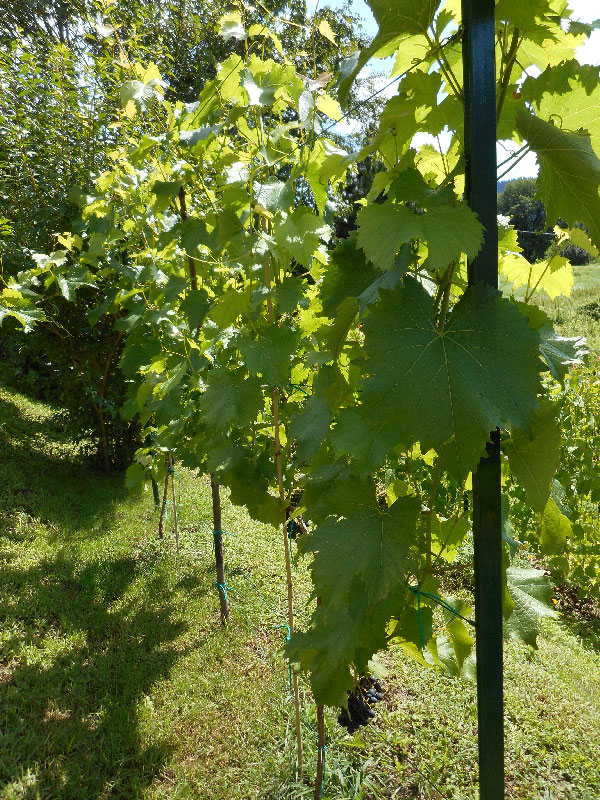 Rieccomi con gli aggiornamenti promessi. In quanto vite precoce (molto precoce, era specificato nella sua scheda) ha già maturato i grappoli. Oggi ne ho mangiato uno, dai buono! Anche se è strapieno di semi (il contro di questa varietà). Comunque, ho tenuto solo 3 grappoli a vite, come mi avevate consigliato. Le piante hanno avuto un buon sviluppo vegetativo, mi sembra. Il tronco era grosso come una matita, adesso è un pennarello della uni-posca. Grazie a tutti!