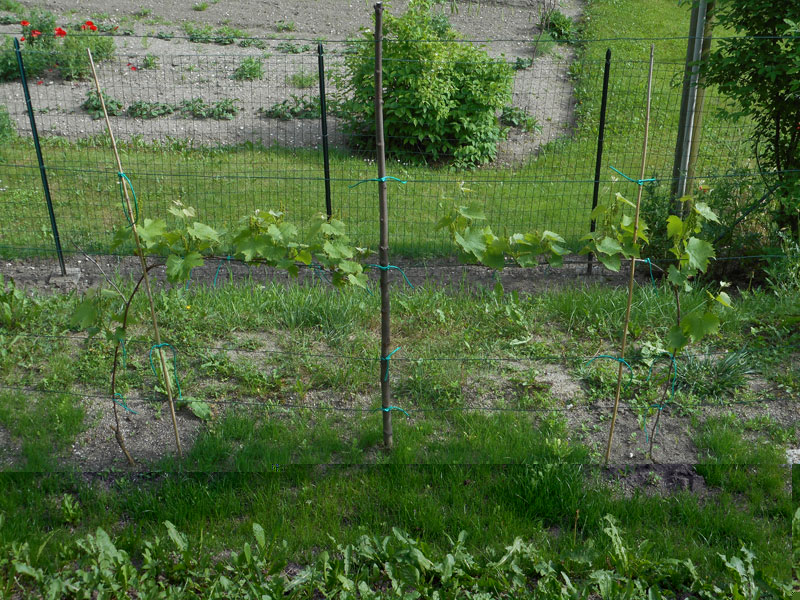 Io personalmente una vite di un paio di anni, che tra l'altro dalla foto sembra anche abbastanza esile, non l'avrei impostata con un capo a frutto così lungo. L'avrei potata molto più corta per farla irrobustire un pò. Non mi preuccuperei più di tanto dei grappoli se non qualcuno giusto per saggiare la varietà.