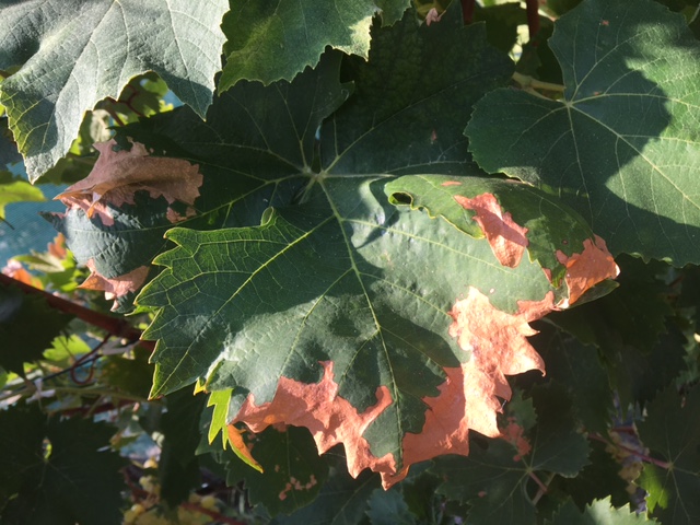 L'impianto ha 10 anni, da un paio di anni compare il disseccamento delle foglie che è documentato nelle foto allegate e che in alcune piante si è aggravato tanto da uccidere la vite.