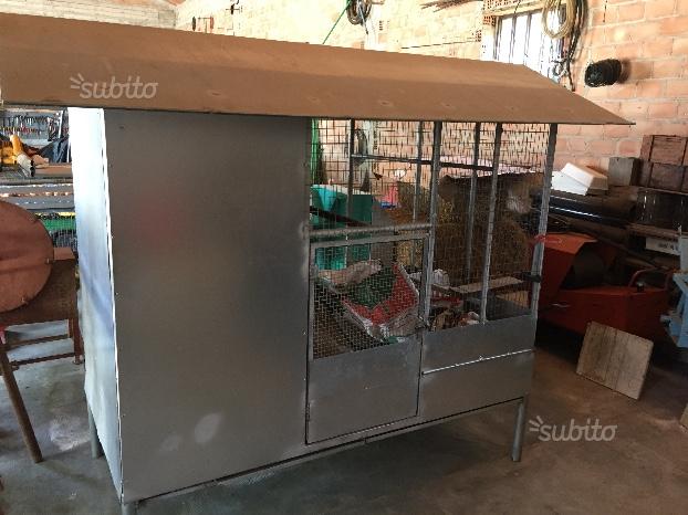 Essendo però l'orto in affitto, volevamo predisporre una struttura mobile, che all'evenienza si possa traferire in un altro posto se si ritenesse necessario, e che un domani (se riusciremo a creare una grande voliera in un posto nostro) si possa riutilizzare per novelli o per i pulcotti del pollaio. Inizialmente abbiamo pensato di costruire noi qualcosa di semplice e confortevole, ma i costi abbastanza gravosi di legno o metallo (per la struttura), della rete e della copertura per il tetto, ci hanno fatto optare per cercare qualcosa di già pronto (di seconda mano).